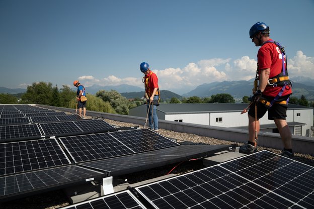 Maximale Belegung der Dachfläche bis nahe an den Rand dank Sicherheit im absturzgefährdeten Bereich.