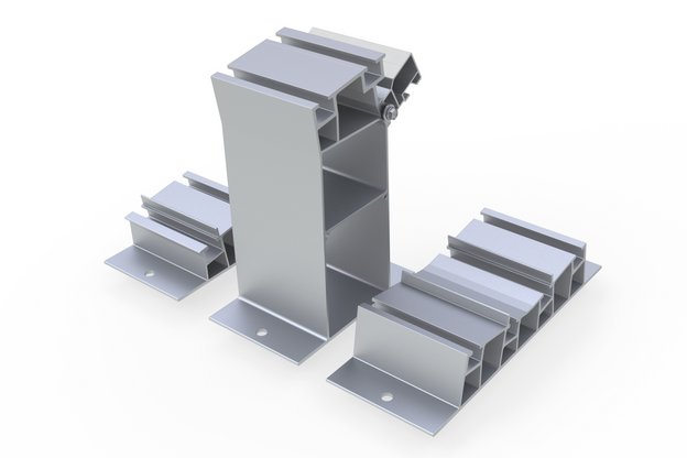 Robuste Materialien wie Alu und Stahl sorgen dafür, dass die Stützen verformungsfrei und strukturentlastend sind und höhere Wind- und Schneelasten aufnehmen können. Die Stützen in 65 oder 100 mm Breite sind für alle Standardmodulbreiten geeignet.