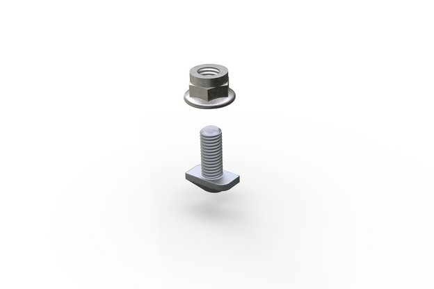 An den Stützen sind sich automatisch in den Nutkanal einfädelnde Hammerkopfschrauben vormontiert. Beim Festschrauben dreht sich der Hammerkopf in die richtige Position. Vorteil: weniger Montagezeit, reduzierte Bauteile, stabile Verbindungen.