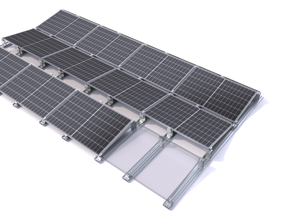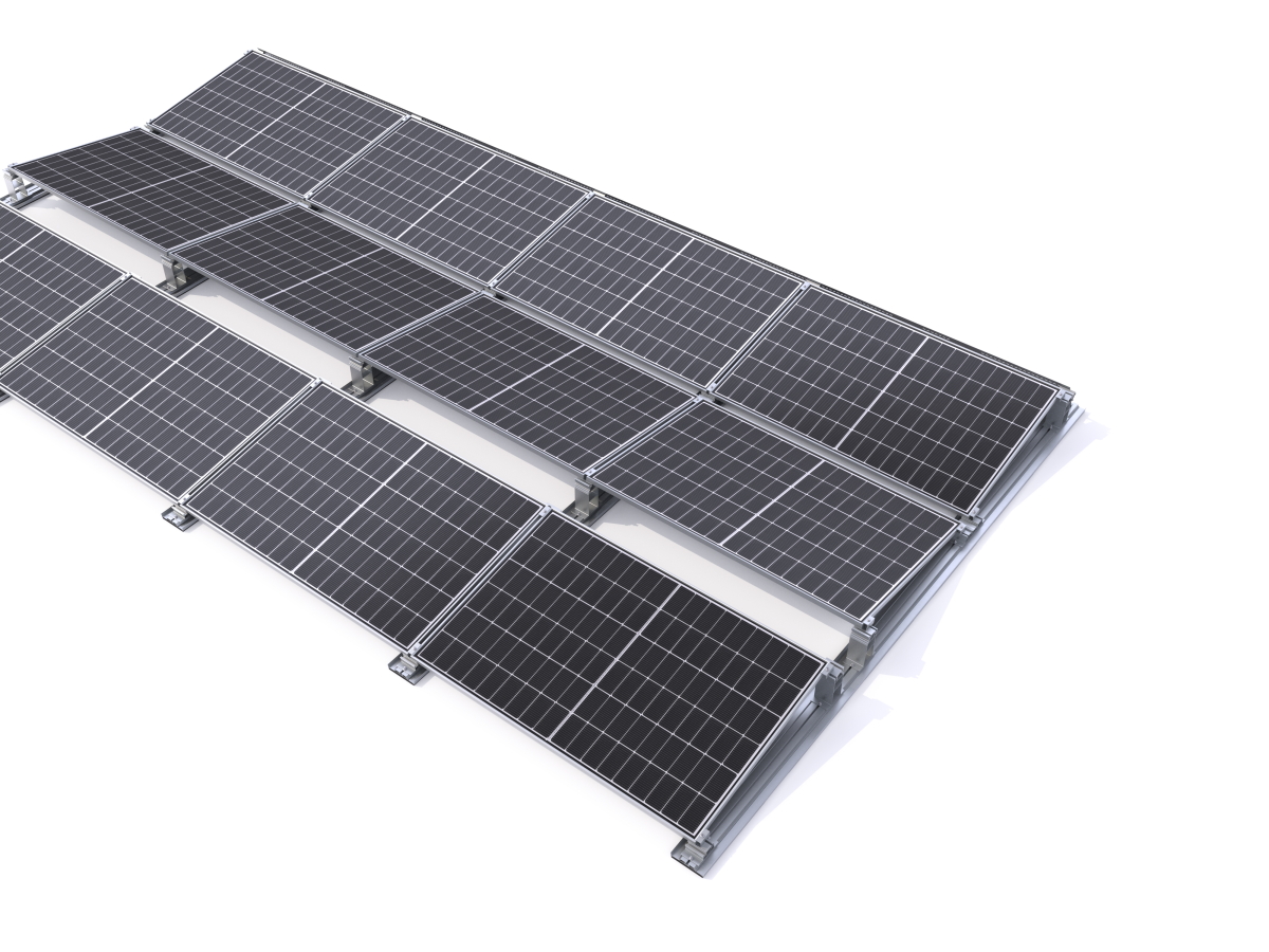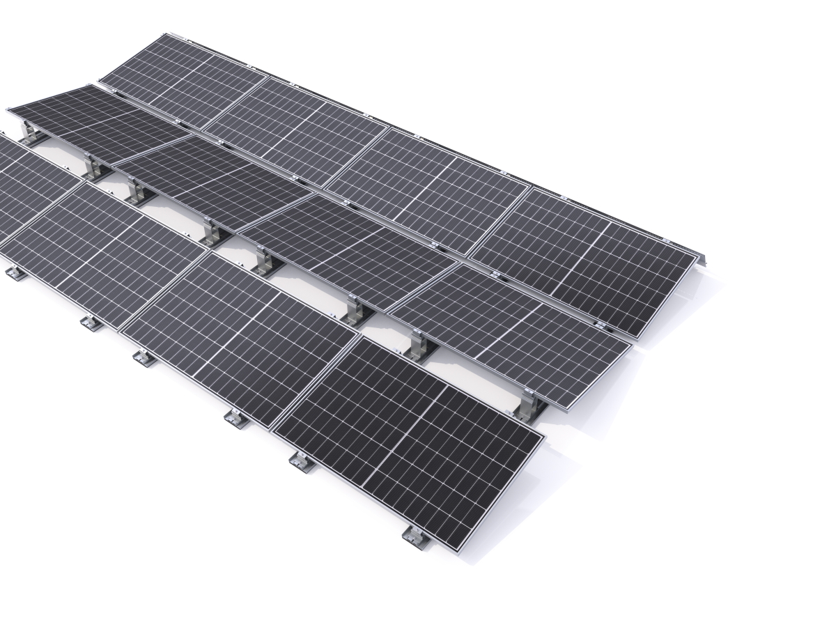 Mehr Flexibilität für große Module: Die Weiterentwicklung unseres aerodynamischen Flachdach-Montagesystems eignet sich ideal bis 3 m² Größe. Aerodynamisch optimiert, dauerhaft sicher – komplett ohne Dachdurchdringung.